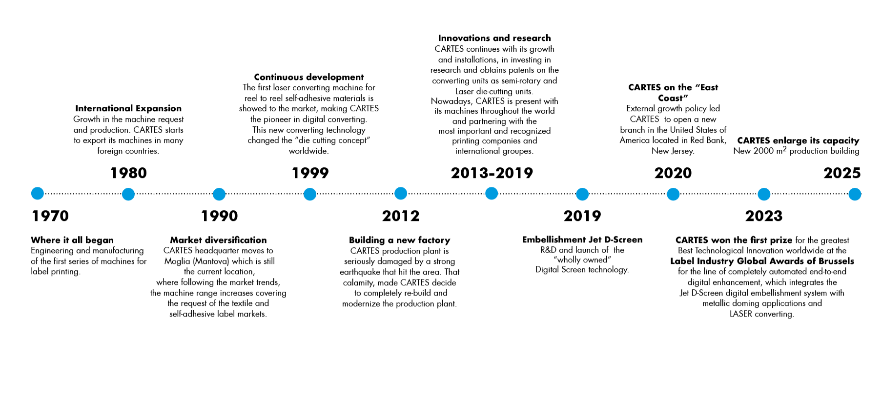 CARTES, founded in 1970, is a global label machine manufacturing company, specialist on high value-added products market and pioneer in the development of innovative solutions for the self-adhesive as well as linerless reel to reel web printing finishing and converting processes.